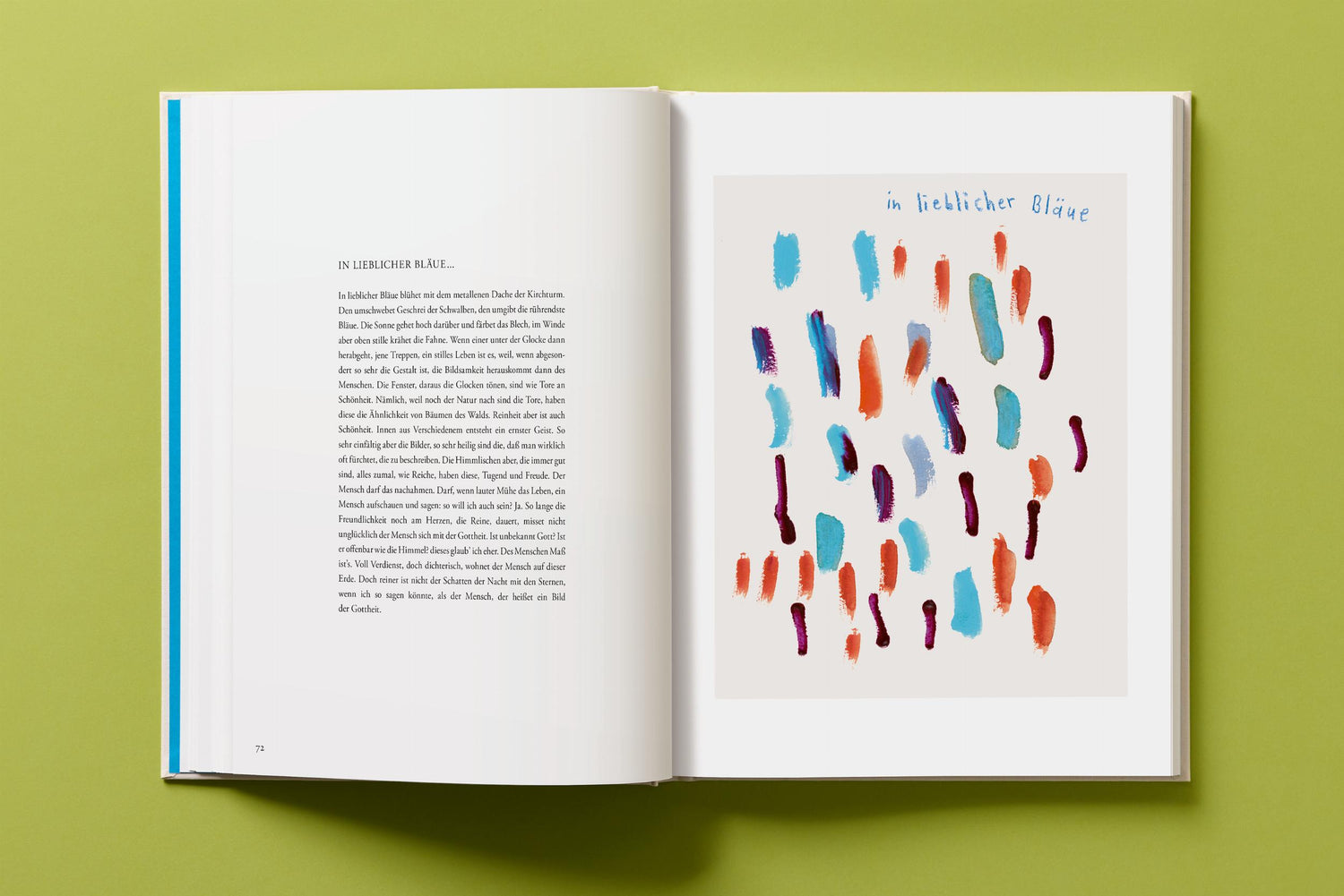For this book André Butzer has chosen 47 poems by Friedrich Hölderlin on the four seasons and created 40 accompanying watercolors. In unison words and images ponder man’s dwelling upon this earth, in the humblest and most poetic way. This precious edition presents the poems in German and English, many translated for the first time by Alta L. Price.